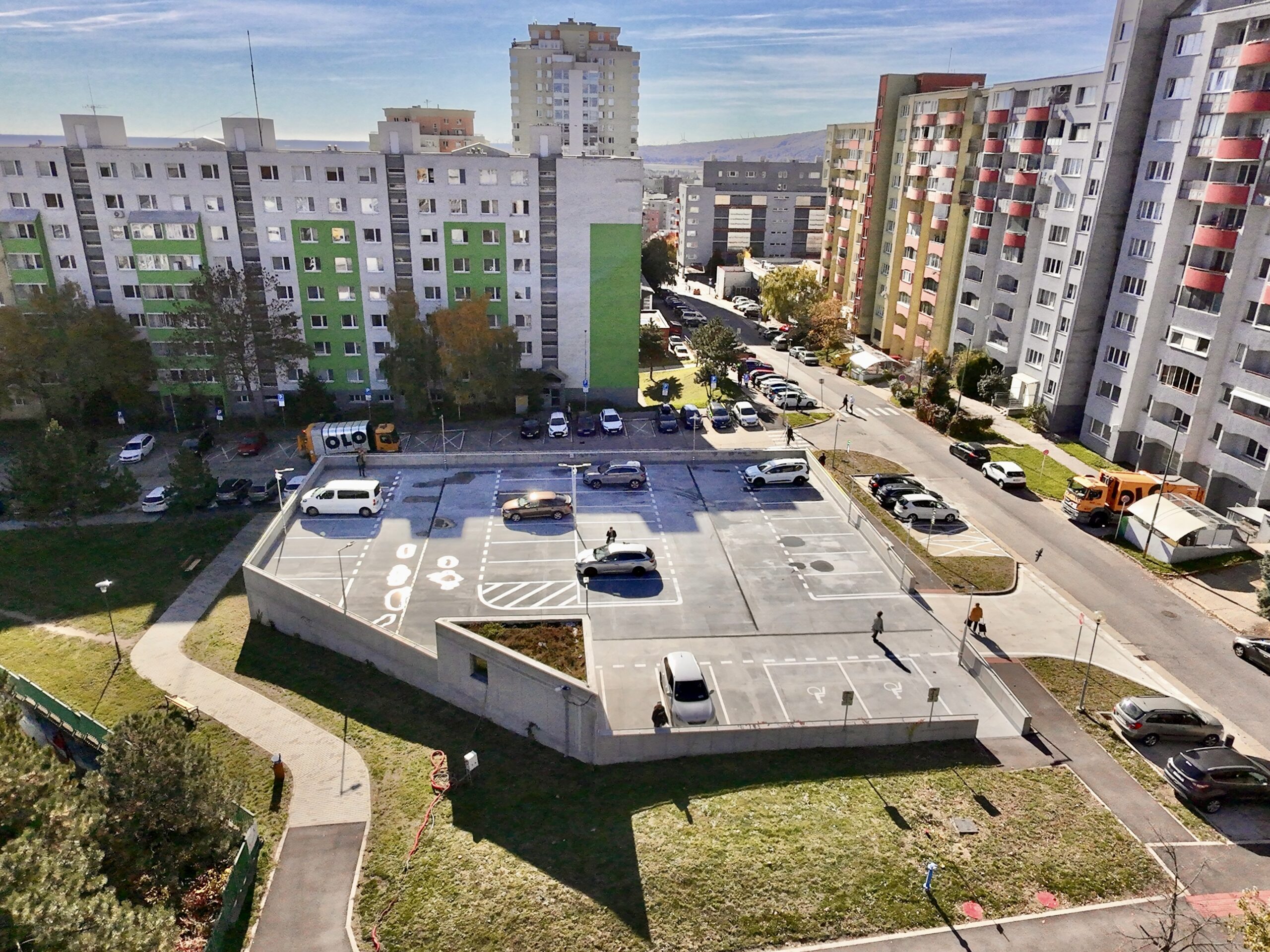 Vďaka novému objektu sa počet parkovacích miest v tejto lokalite zvýši takmer o polovicu. Celkovo bude pre obyvateľov k dispozícii 65 parkovacích miest, pričom 31 sa nachádza na otvorenom nadzemnom podlaží a 34 na krytom spodnom podlaží.