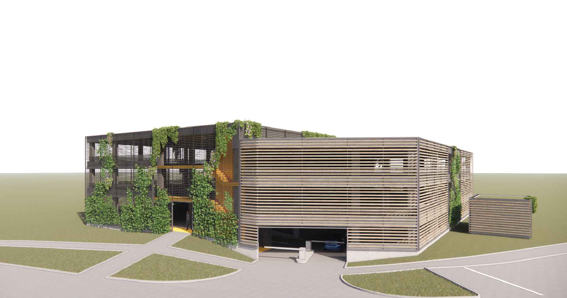 Fasády budú riešené popínavými rastlinami a s modernou technológiou s prirodzeným odvetrávaním za účelom zamedzenia svetelnému smogu. Na strechách parkovacích domov bude použitá extenzívna zeleň, čím sa vytvorí prirodzené chladenie priestoru a bude slúžiť aj na absorbovanie dažďovej vody. Mesto taktiež uvažuje o inštalácii solárnych panelov na strechách parkovacích domov.
